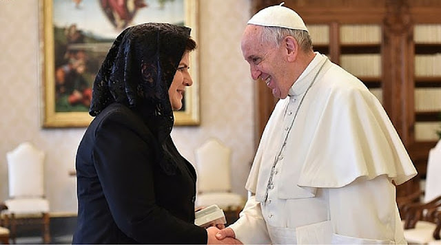 Diz-nos hoje o Papa Francisco sobre Nossa Senhora: "Mulher corajosa! As mulheres corajosas que estão na Igreja são como a Virgem. Estas mulheres que levam para a frente a família, estas mulheres que levam a cabo a educação das crianças, que enfrentam muitas dificuldades, tantas dores, que curam os doentes... Corajosas: levantar-se e servir, servir. O serviço é sinal dos cristãos."[2]